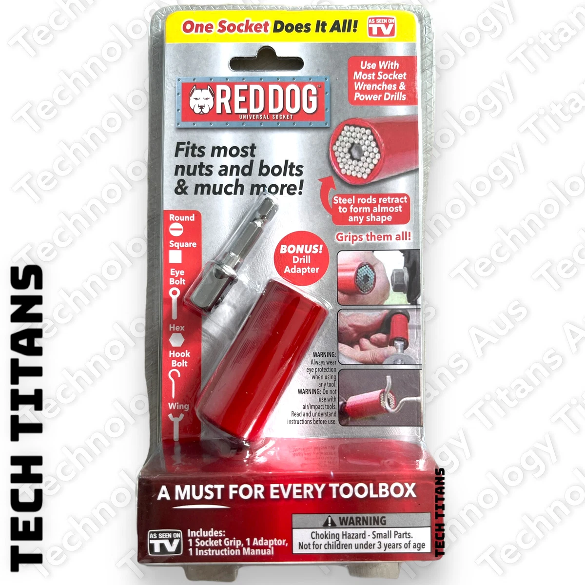 Red Dog Socket W Bonus Drill Adapter As Seen On Tv Fits Most Nuts Bolts Use With Most Socket Wrenches Power Drills Steel Rods Retract To Form Almost Any Shape Standard Or Metric 2 In Amazon Com Au Home Improvement